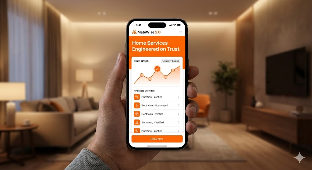 MateWise 2.0 is an AI-powered marketplace transforming the home service industry in the UK. We replace manual uncertainty with a proprietary Trust Graph and Reliability Engine for guaranteed outcomes.